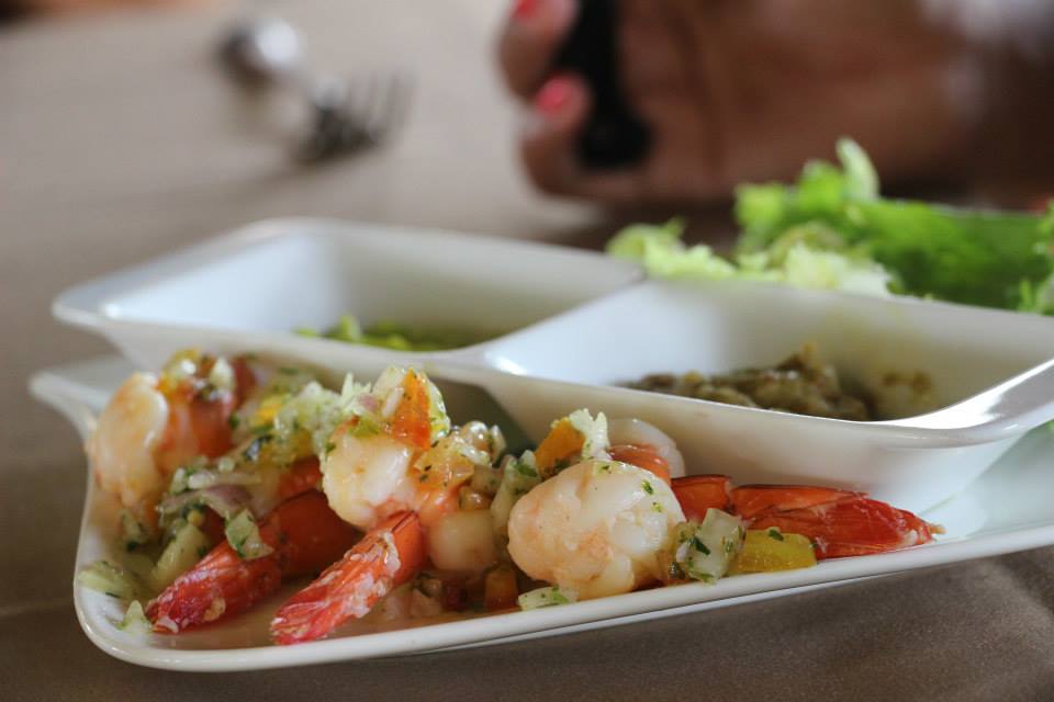 Nous avons opté pour une simple journée détente. Après le cocktail de bienvenue, nous avons pu déguster une série de plat autour de la mer. Pour moi c’était carpaccio de poisson et des langoustes avec des légumes.