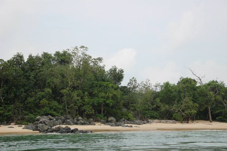 Après 20 minutes en bateau à apprécier l’estuaire du Gabon et découvrir le paysage maritime, nous arrivons à la Baie des Tortues Luth.