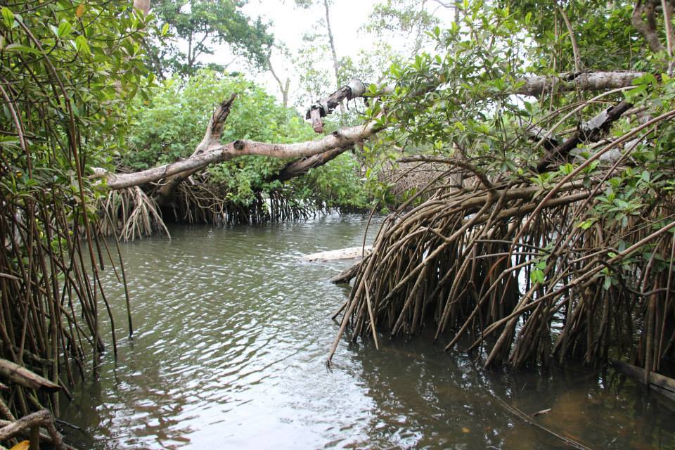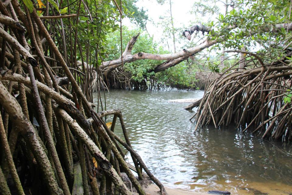 Nous avons ensuite cassé la croute avant d’aller nous promener sur le bord de mer. La nature est belle et paisible. Avant d’arriver au croissement entre la mer et la mangrove, nous avons traversé la formation rocheuse du Cap à la marée basse. Nous avons également pu admirer les palétuviers essentiellement rouges avec leurs grosses racines.