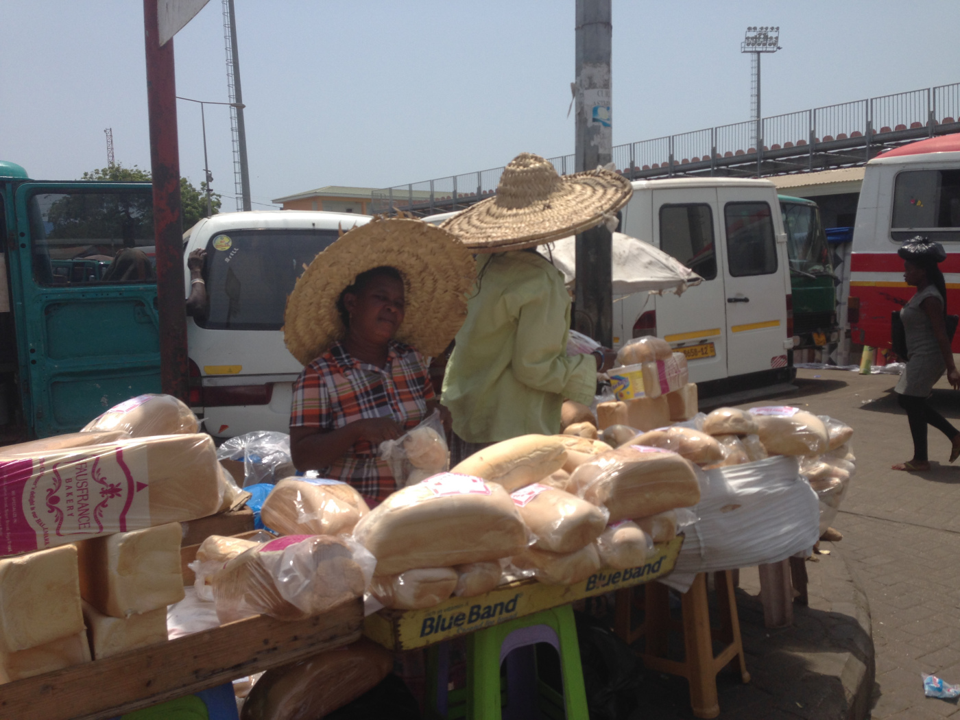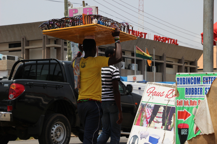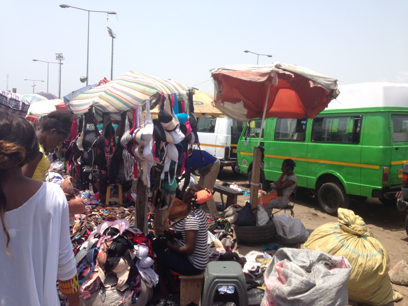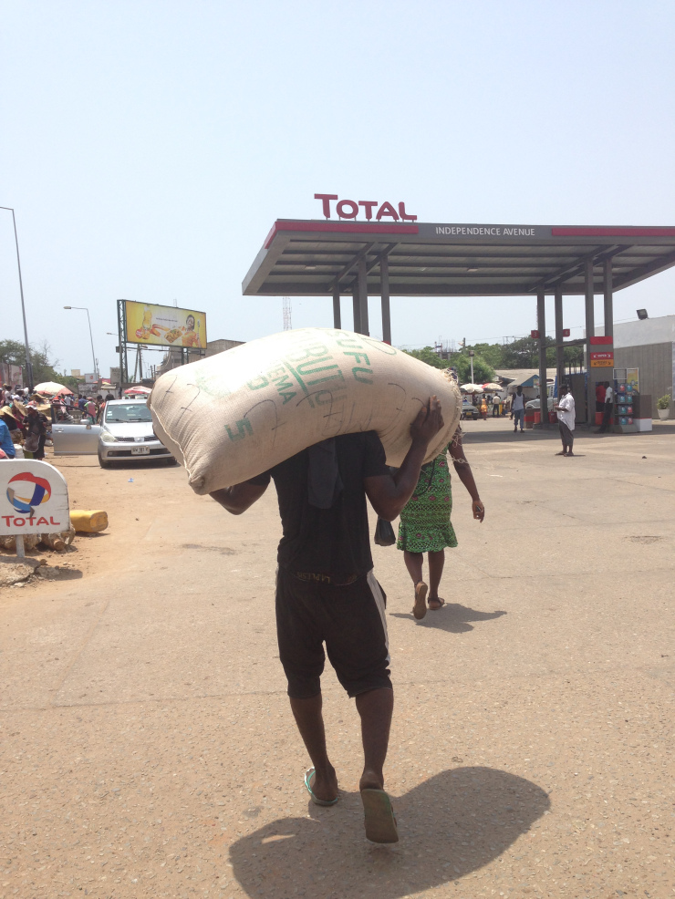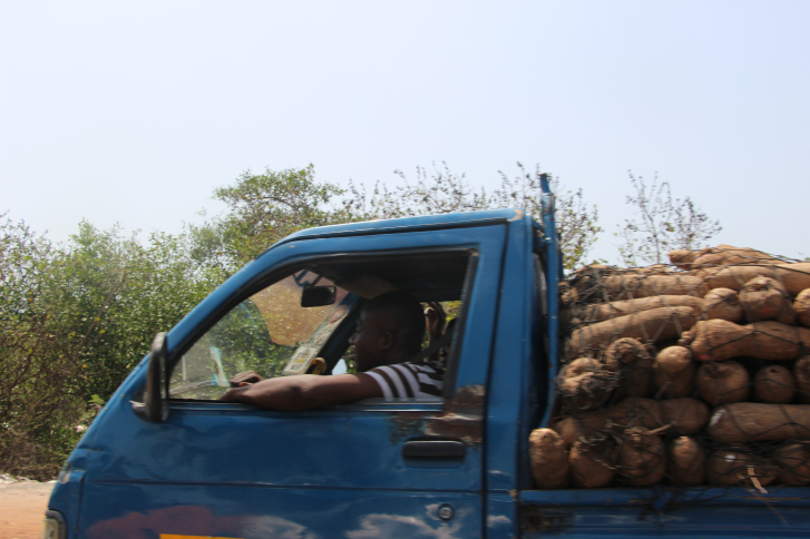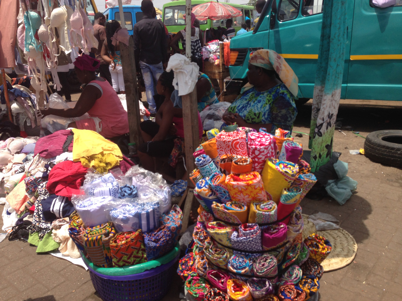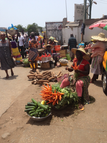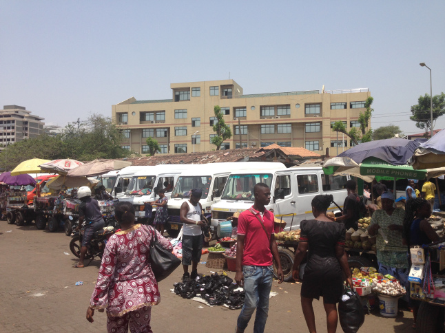 Lorsque nous avons fini notre visite, nous avons grimpé dans un trotro direction le marché de makolo. Il faisait une chaleur étouffante.