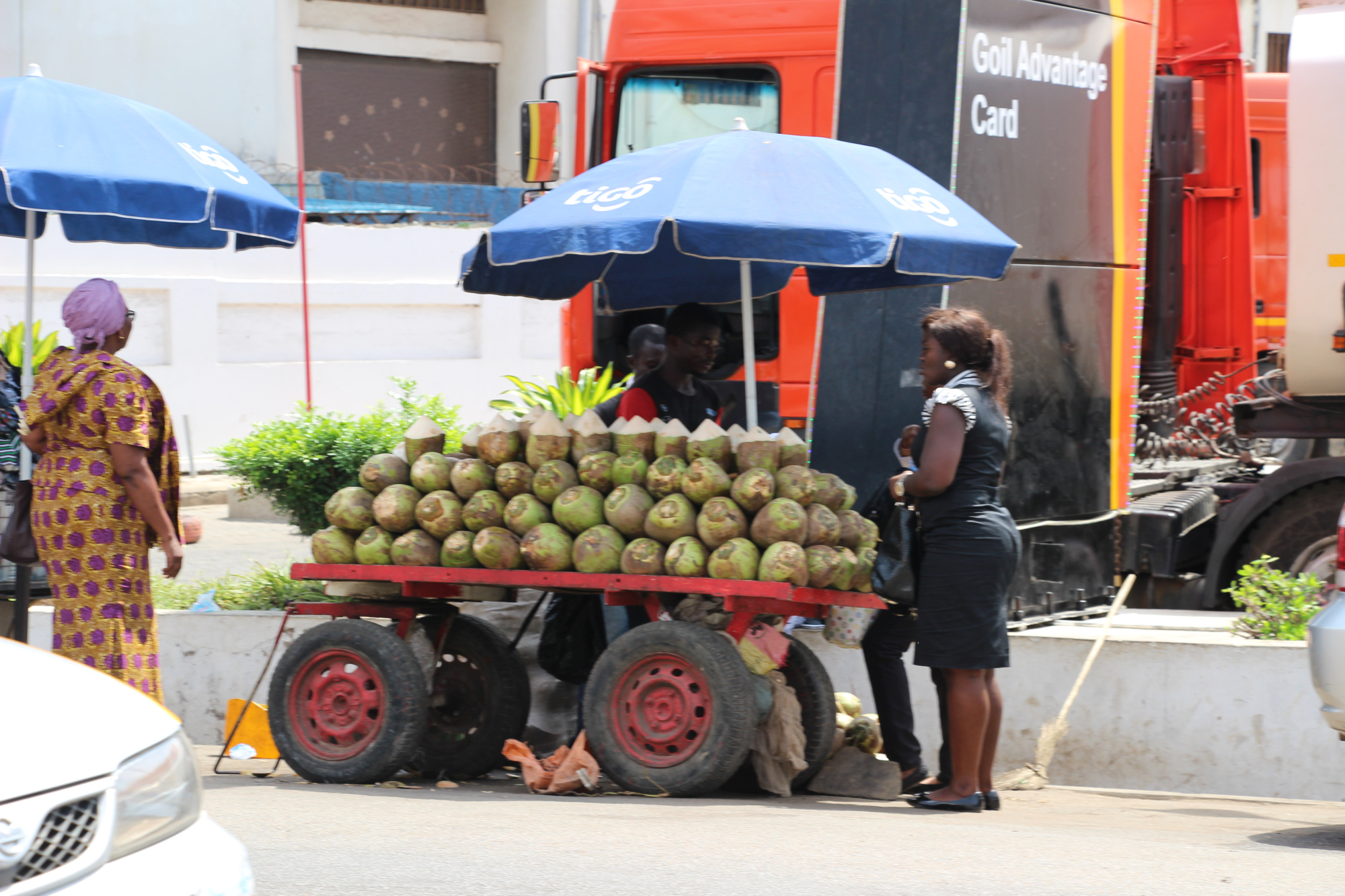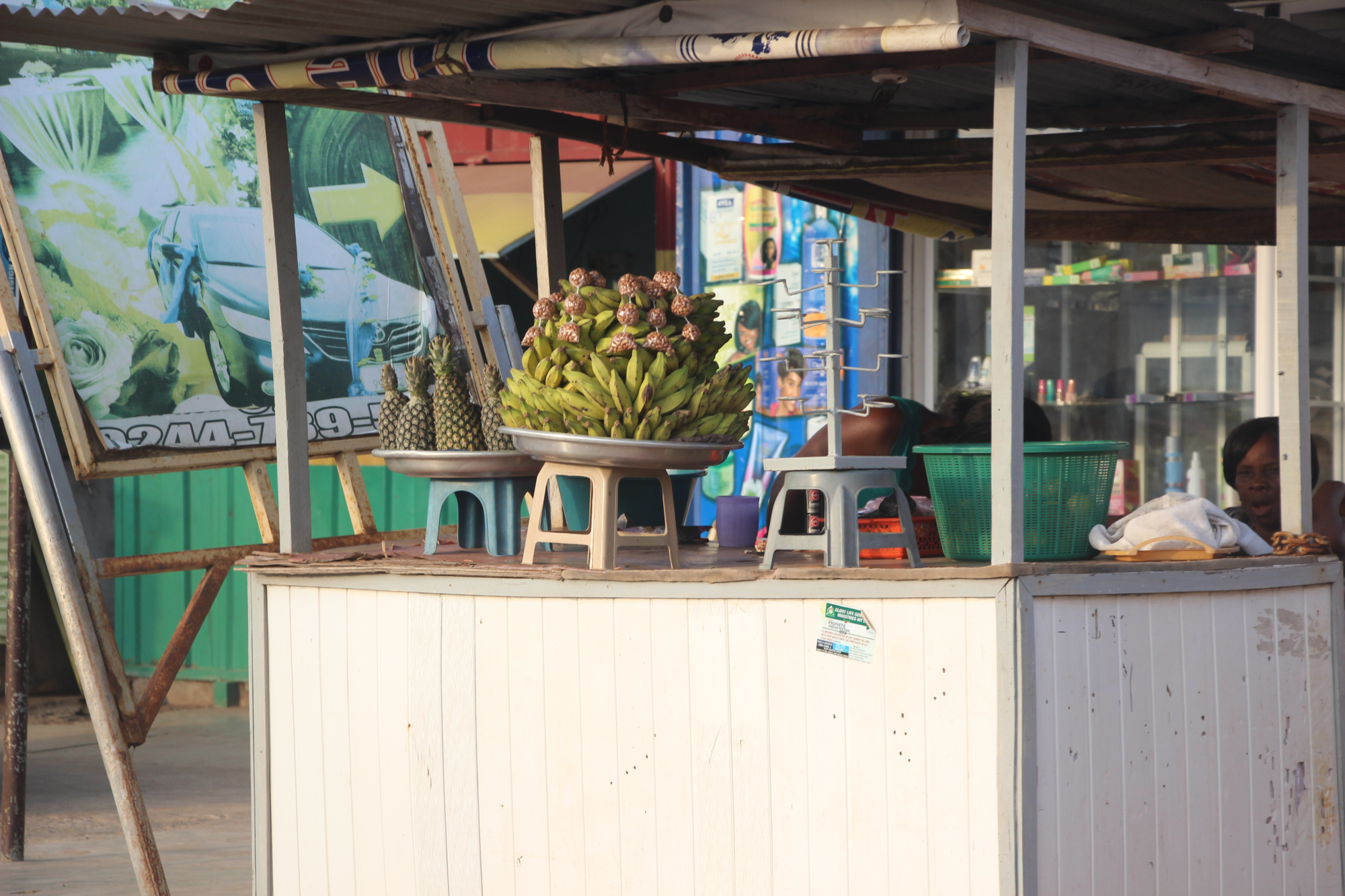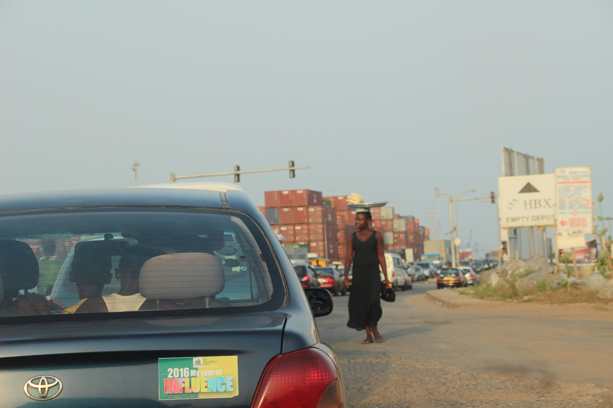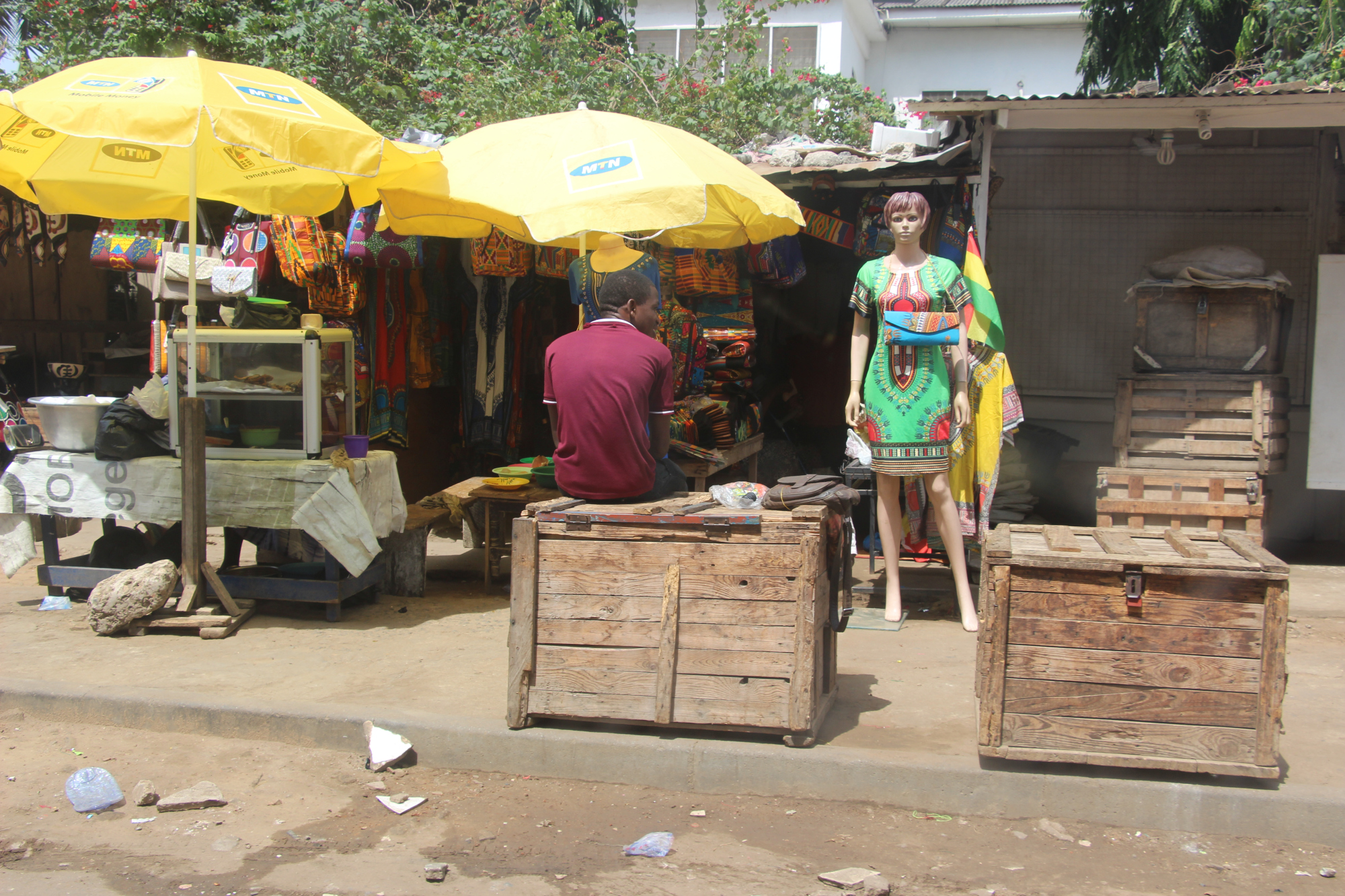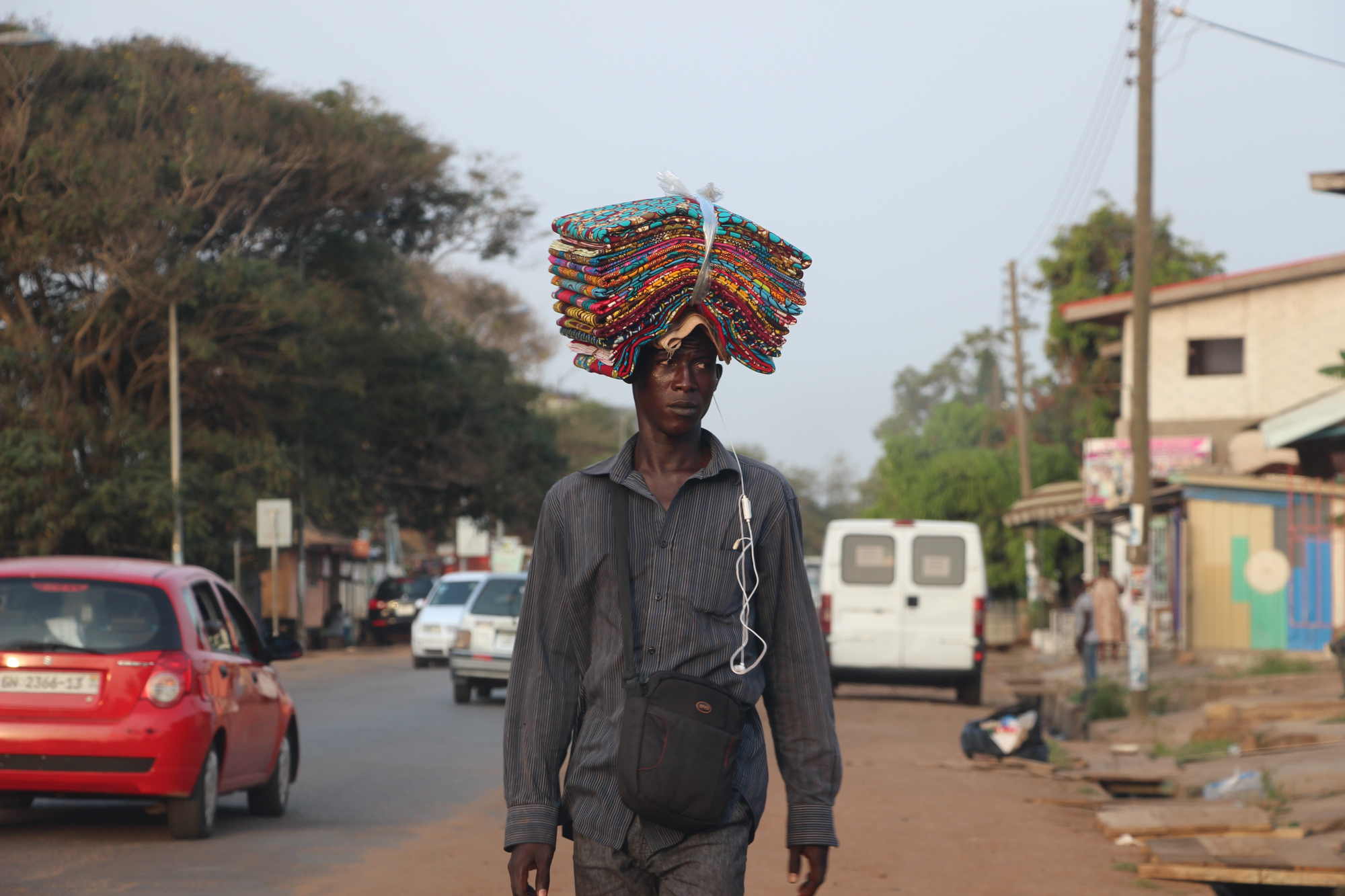 Lorsque nous avons fini notre visite, nous avons grimpé dans un trotro direction le marché de makolo. Il faisait une chaleur étouffante.