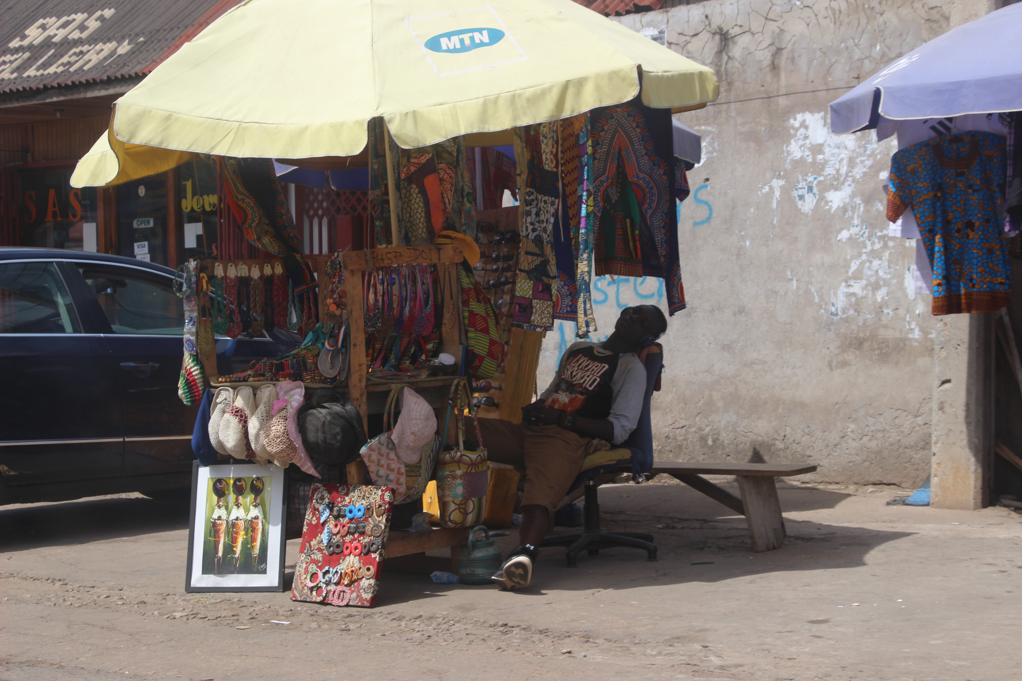 Sauvez par Samuel, un ami de ma copine, nous grimpons dans son 4×4 pour nous rendre dans un centre médical pour récupérer des analyses de mon amie. Samuel est accessoirement apprenti de Kofi Ansah, styliste ghanéen de renommée au Ghana et en Afrique. Il m’a permis d’en savoir plus sur cet illustre artiste. C’était très instructif.