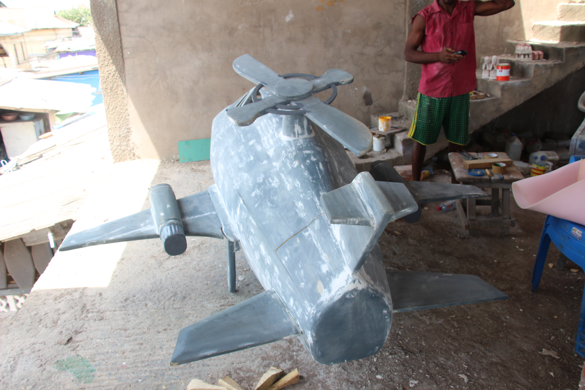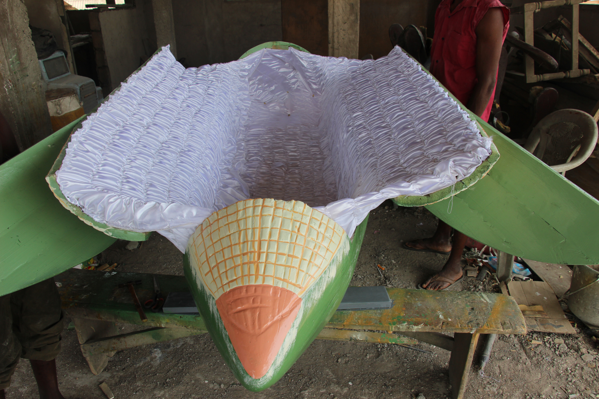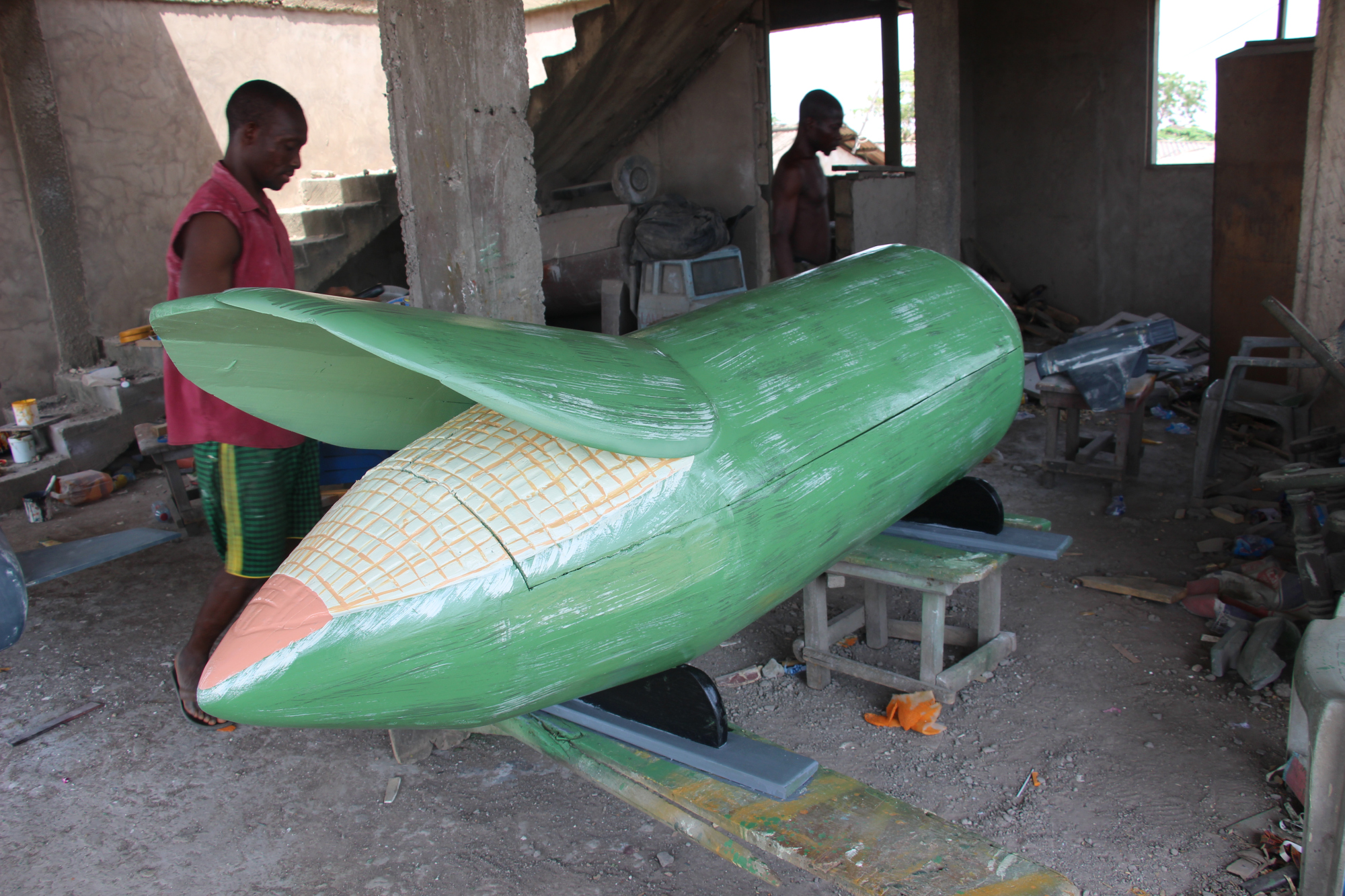 Ce matin je me suis levée de pieds ferme pour une découverte de la banlieue d’Accra. Direction le quartier de Tieshi pour rencontrer les artisans qui réalisent les cercueils personnalisés. Pour la petite histoire cette pratique est originellement un rite mortuaire de l’ethnie Ga, pour qui, après la mort, il y a l’au-delà. Par conséquence, les cercueils matérialisent le statut social du défunt afin de leur permettre de conserver ce statut dans l’au-delà.