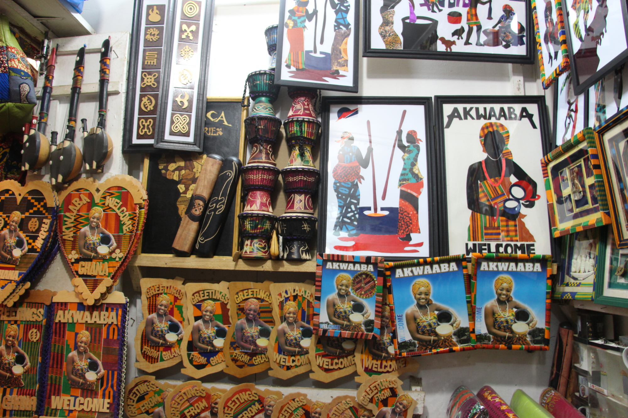 Ces symboles ouest africains qui évoquent la sagesse traditionnelle auraient été créés à l’origine par les Ashanti et les Akan du Ghana et les Gyaman de Côte d’Ivoire. Ces symboles transmettent des messages et représentent des situations et concepts très précis. Au Ghana, ils sont omniprésents. On les voit dans les halls des hôtels, sur des poteries, sur les pagnes, en ornement de bijoux, comme pendentifs, en décoration d’instruments de musique, en objet décoratif, …. Et j’en passe.