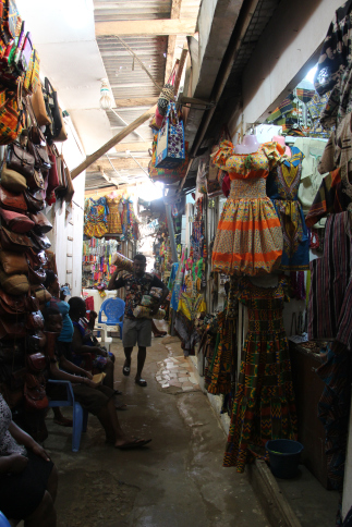 J’ai acheté des pagnes que l’on ne trouve pas à Abidjan car uniquement produit au Ghana. C’est ma Maman et mes sœurs qui sont contentes. Et j’ai pu constater que le marché fixait lui même les noms des pagnes. Effectivement ce sont les vendeuses qui donnent le nom, un peu comme en Côte d’Ivoire.